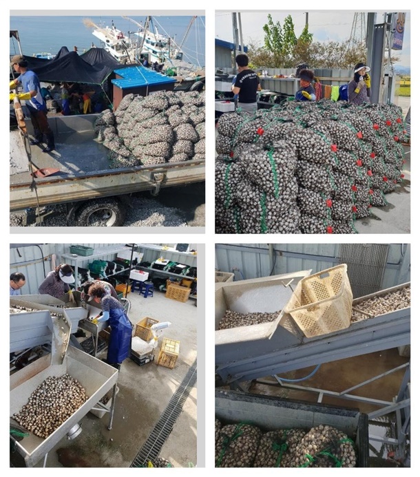 (꼬막껍질이 잘 떨어지는 방법으로 꼭 한쪽방향으로)