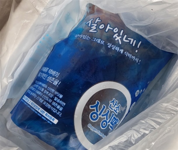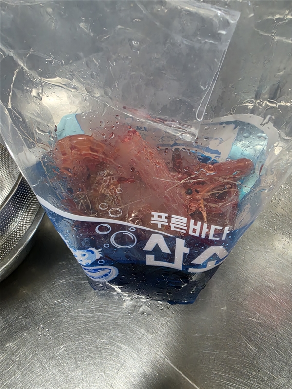 ✅새우 뿔에 찔려 포장이 산소포장지가 파손될수 있으나