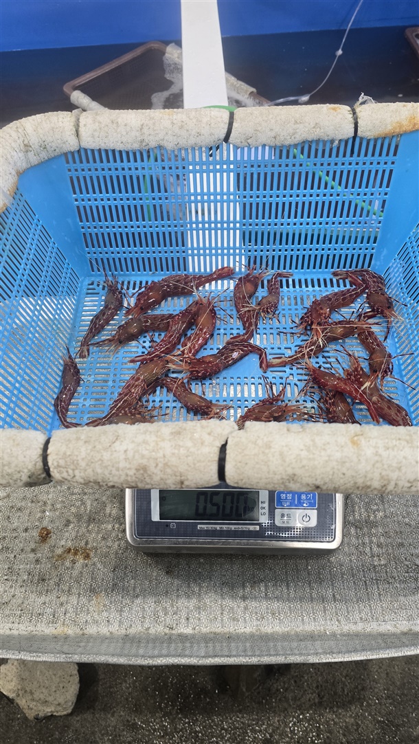 500g 기준 꽃새우는 21미 내외, 닭새우는 18미 내외!