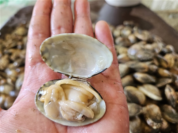 기본 해감은 되어 나가지만 뻘이많은 조개라 집에서 해감 해주셔야 합니다!