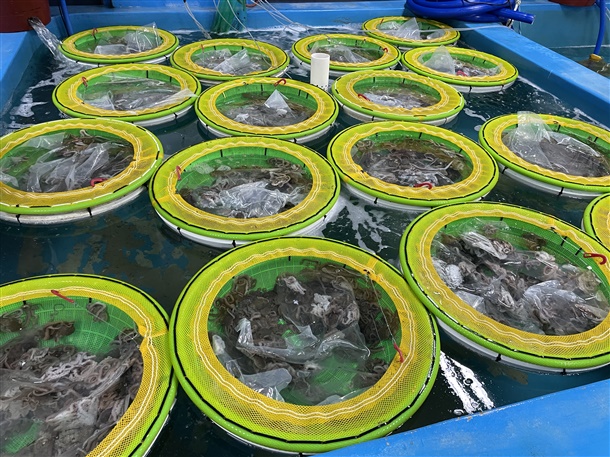 지금 수조에 다 살려서 산소포장으로 신선하게 발송!
